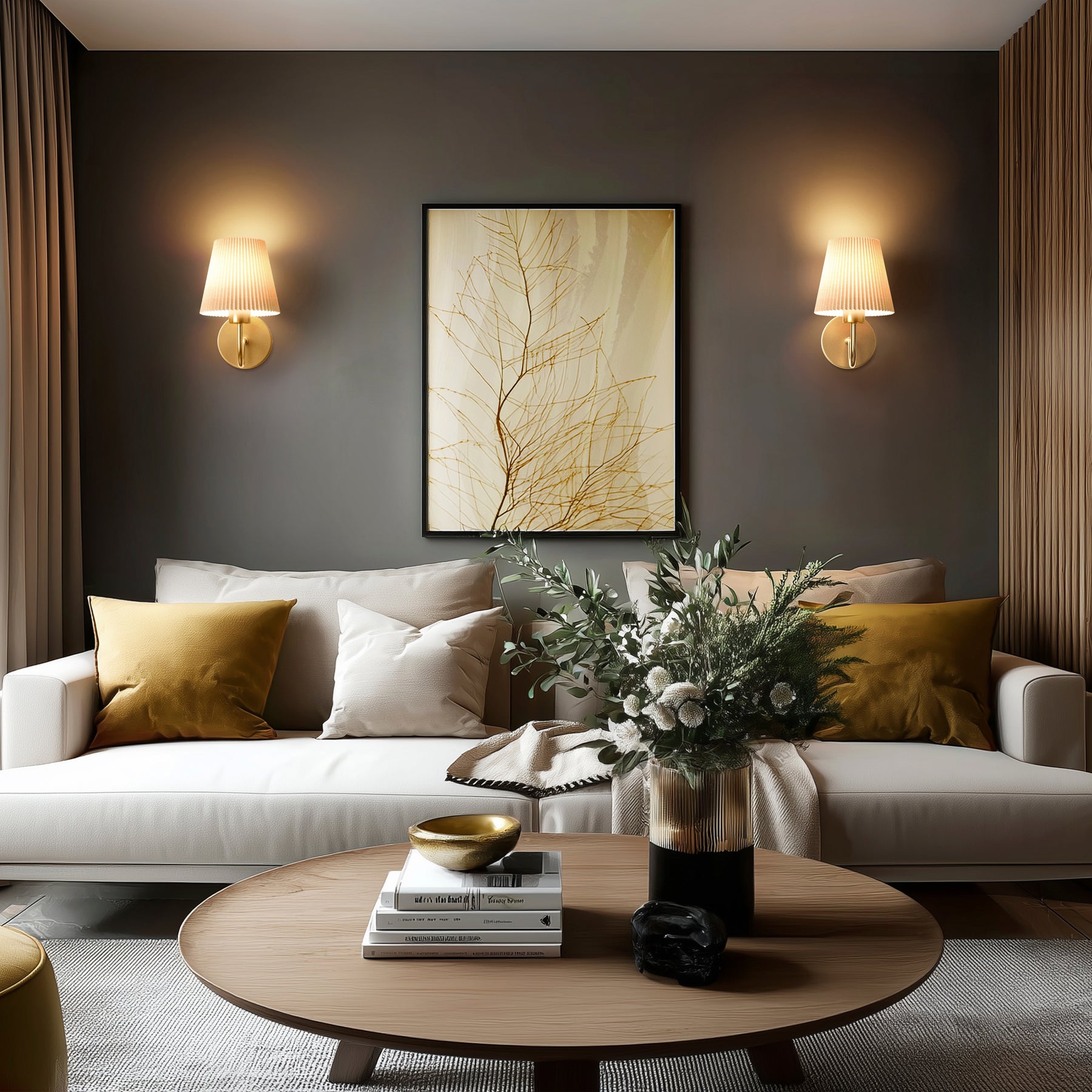 Free up your decor choices with our luxury wall lights. The classic black and gold finish combined with an elegant white fabric rod and shade blends effortlessly into any interior style.