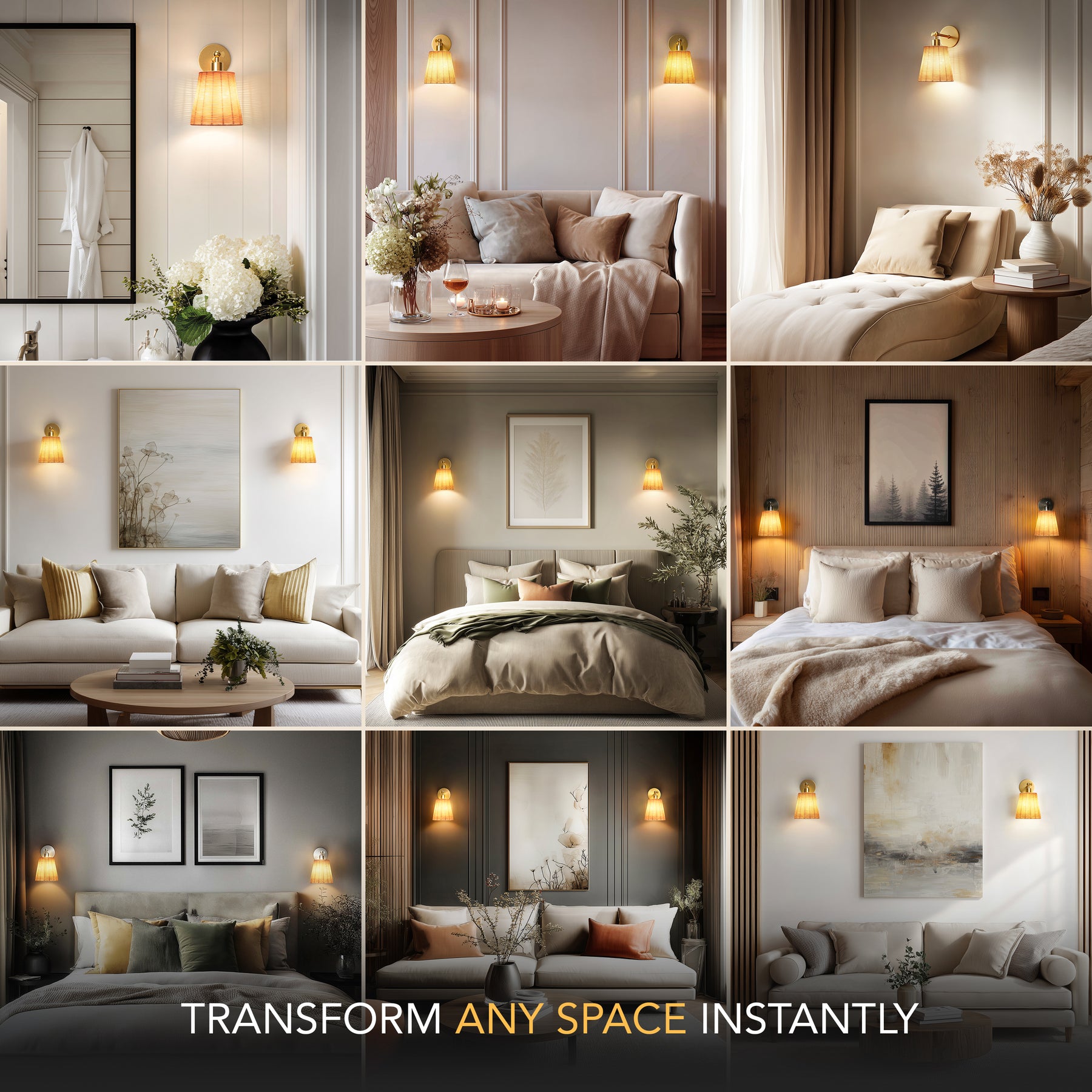 4. Enjoy: Turn on the lamp using the remote control. Customize light settings to match your mood, with options to change color, brightness, set timers & enjoy the luxury of these gorgeous wall lamps!
