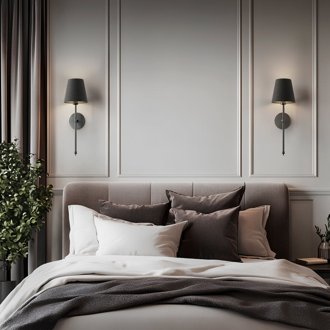 Free up your decor choices with our luxury wall lights. The classic black and gold finish combined with an elegant white fabric rod and shade blends effortlessly into any interior style.