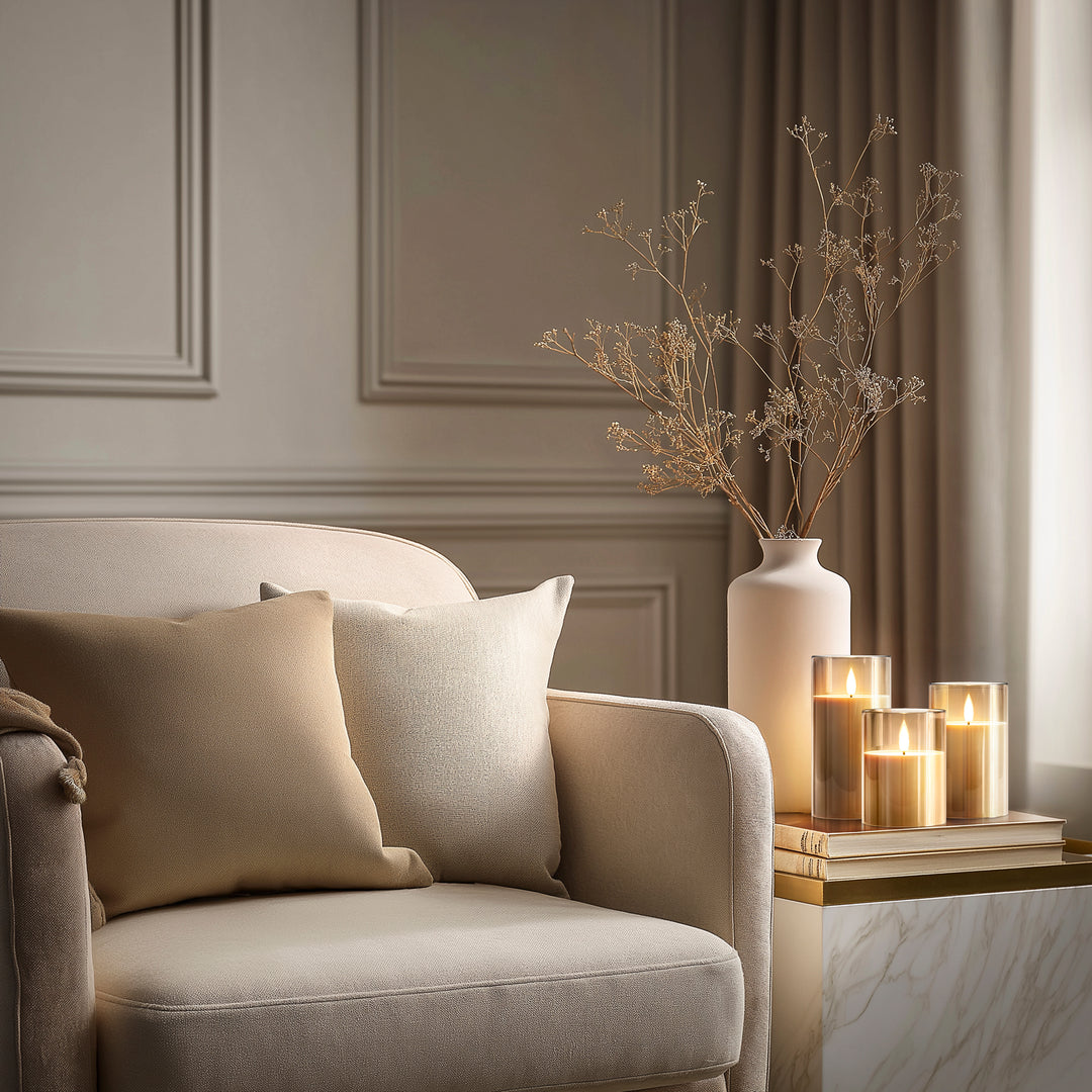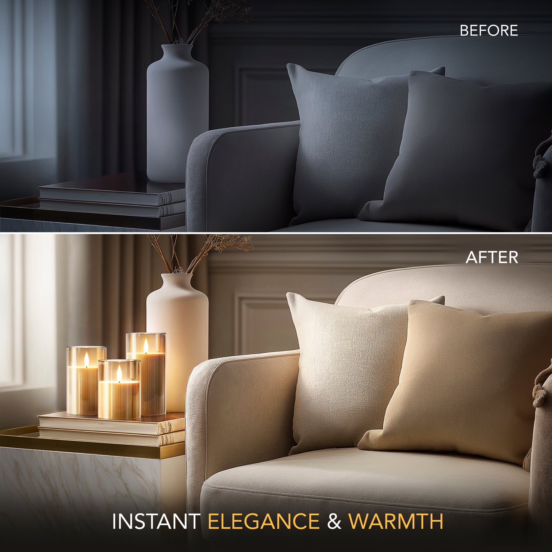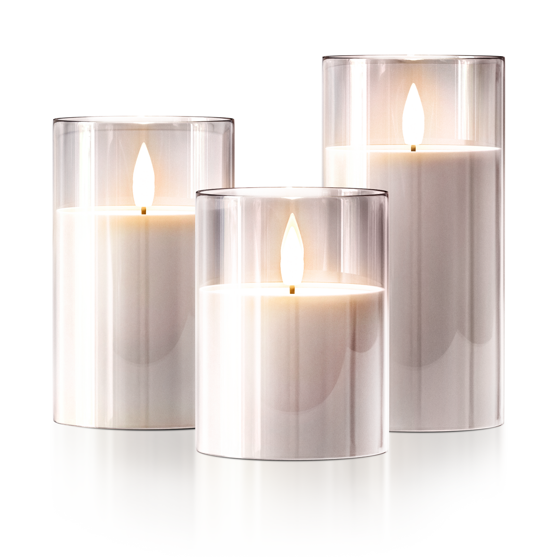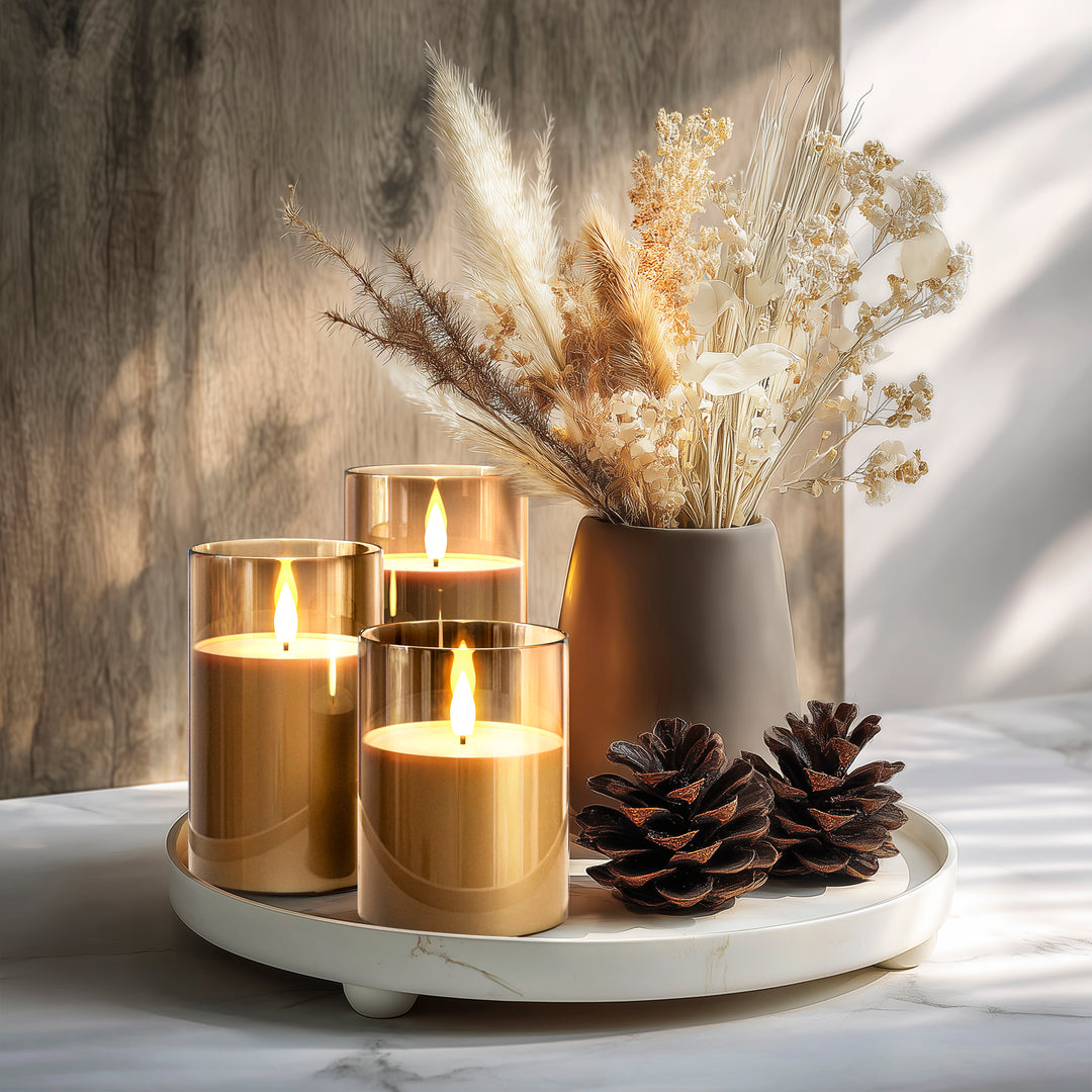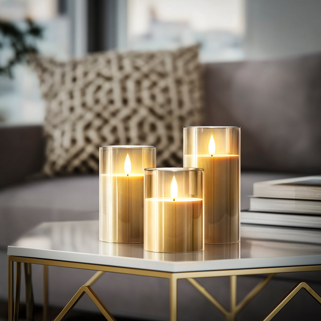 This candle redefines home ambiance with its elegant tempered glass design and custom-crafted LED flame. The light gently reflects through the glass, creating a warm, natural glow that enhances any space.